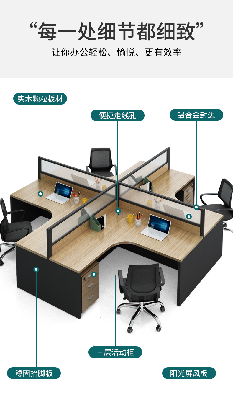 办公桌椅组合职员办公室家具24/6人位转角员工作隔断屏风简约卡座