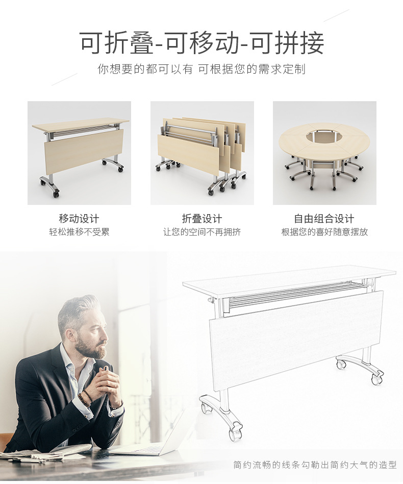 厂家直供多功能折叠会议桌 移动长条培训桌 教室办公室组合桌椅
