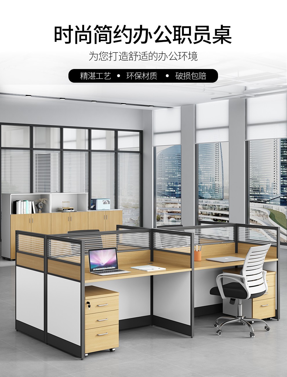 海南办公桌椅组合 职员桌 现代简约办公家具 四人位 员工屏风办公桌